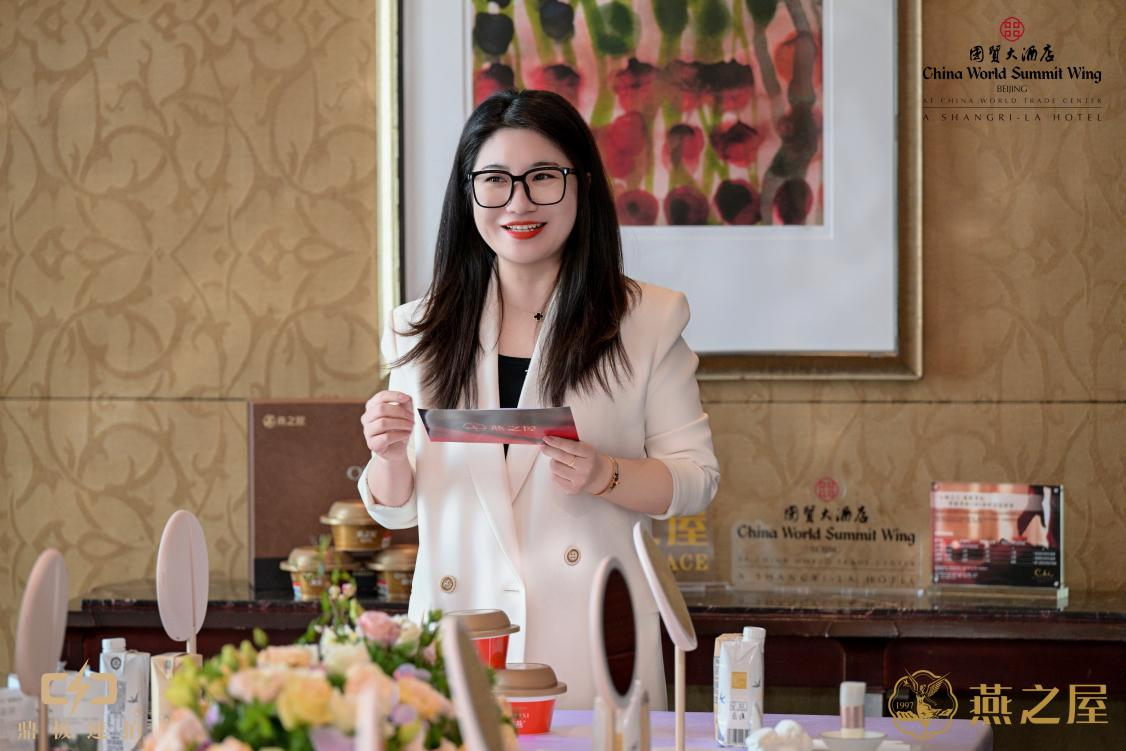活動伊始,燕之屋北京子公司總經(jīng)理徐可致辭道:“燕之屋與北京國貿(mào)大酒店聯(lián)名下午茶是燕之屋在首都北京的首次下午茶聯(lián)名合作。我們十分榮幸并且一定要把這份美與健康的生活理念傳遞給燕之屋重要的貴賓們。今年燕之屋還會在北京繼續(xù)探索“燕窩+咖啡”“燕窩私宴”,將燕窩更多地融入生活場景中,給各位貴賓帶來更好的服務(wù)體驗。”隨后,北京國貿(mào)大酒店公關(guān)部總監(jiān)胡伊上臺致辭,詳細介紹了北京國貿(mào)大酒店文化底蘊。北京國貿(mào)大酒店傲居紫禁之巔,始終致力于打造都市高雅生活方式,胡伊邀請大家一同置身甜蜜午后曼妙時光,悅享地標性奢華體驗。
