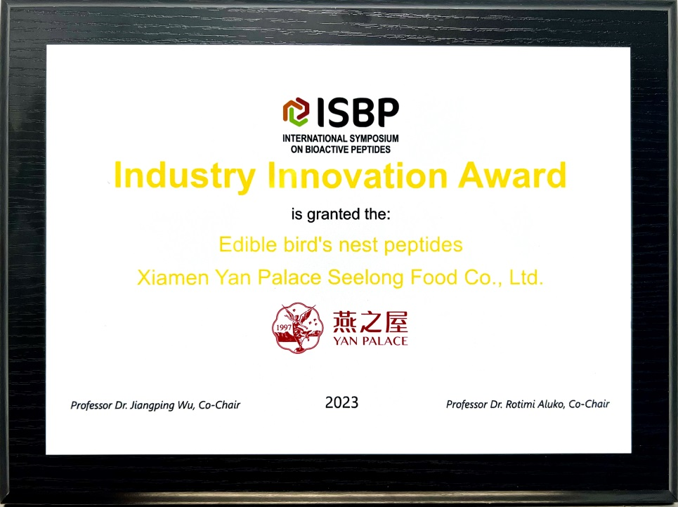 燕之屋多年來致力于燕窩肽的研發,挖掘燕窩肽功效與價值。2022年1月,燕之屋正式成立燕窩肽研究中心,開拓品牌在燕窩肽酶解技術、活性成分與功能研究、消費品研發、標準化等方向的新賽道,從制備工藝到活性研究均取得了顯著進展和突破,多項研究成果刊登于國際權威期刊。憑借在燕窩肽技術創新、功能性開發及應用轉化方面的成果與優勢,燕之屋不斷獲得業界的認可與嘉獎。2023年,燕之屋榮獲第三屆國際活性肽論壇“燕窩肽——行業創新獎”,該獎項肯定了燕之屋在燕窩肽研究領域的創新成果及其對行業發展的貢獻,推動了燕窩行業向更高質量方向發展。2024年,燕之屋燕窩肽榮獲“了不起的中國原料”中國創新原料獎Top10和中國王牌成分獎兩項殊榮,為國產燕窩原料的創新發展注入了新的活力,進一步鞏固了燕之屋在燕窩肽原料開發領域的引領地位。