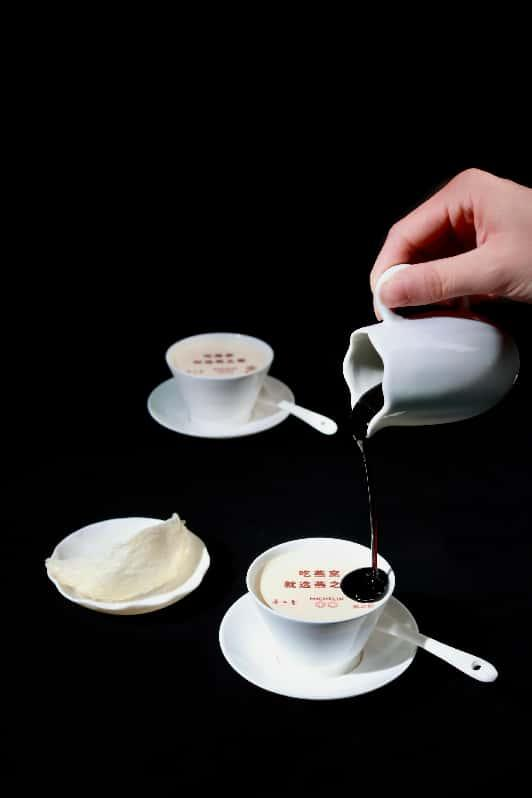 阿膠燕窩發酵酸奶酪,山東阿膠、燕之屋燕窩與驢奶三種珍稀食材創意融合,經24小時發酵沉淀成絲滑酸奶酪,頂部搭配酒糟阿膠,入口絲滑綿密,透出絲絲膠香,滋養與口感雙重升華。這一款甜品則跳脫中餐語境,是對“滋養”概念最當代表達的寫照,跨越時空的食材協奏,正是王浩全對“滋補”理念的重釋。
