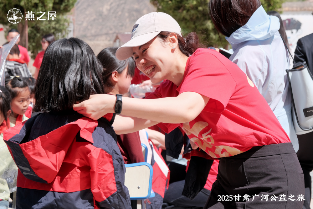 5月15日,燕之屋組織北京、哈爾濱、長春、濟南、廈門、廣州、昆明、貴陽、深圳、福州、南寧等全國11個市場團隊開展甘肅廣河公益之旅,燕之屋副總經理、連鎖事業部總經理翁惠貞帶隊前往水泉學區張家小學,向全校學生捐贈校服等物資,為當地學生送去溫暖。此次活動不僅延續了燕之屋多年來對廣河縣的公益支持,更展現了企業從“扶貧攻堅”到“鄉村振興”的持續擔當。